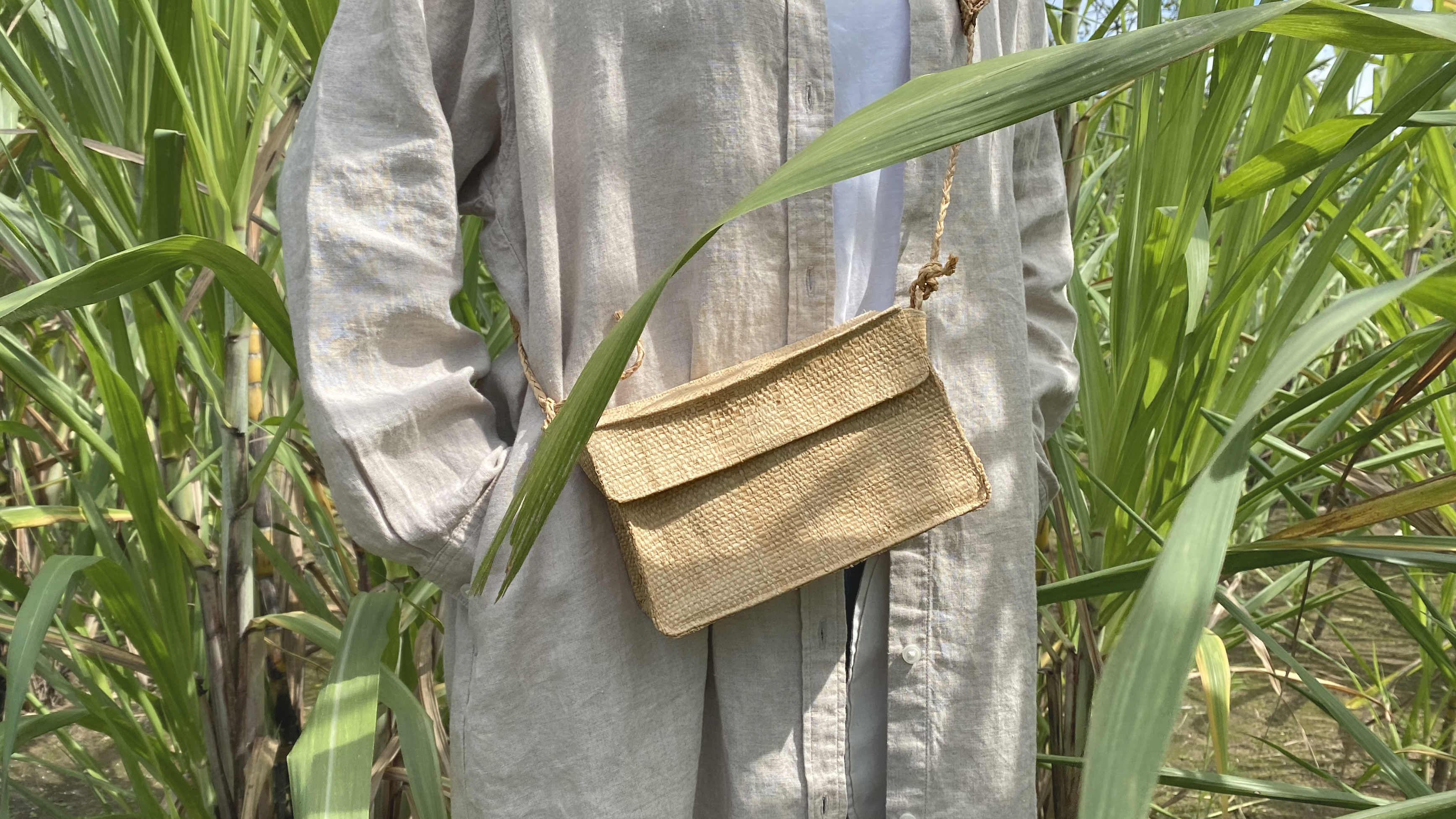 天然拉菲亞草編織而成,不怕潮濕也可以凹折方便攜帶。內部有一個小隔層可放入鑰匙或想給它獨立空間的東西。輕量的小包,空間剛好,隨身的手機、錢包、鑰匙都可以放進去。